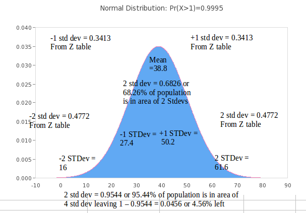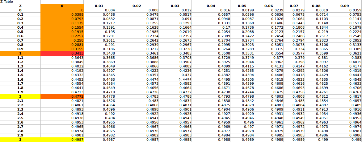Just bear in mind these proportions may not be quite the same as the Z table values below, as they relate the Std Dev to the total area under a Normal Distribution, but close enough for ASCII values: