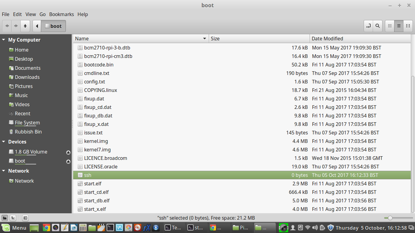 stevee@AMDA8 ~ $ touch /media/stevee/boot/ssh
