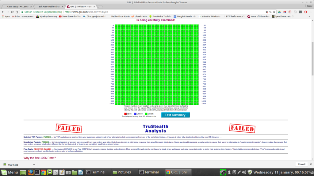 A ping sent further afield cannot exit from the WAN interface though, as only TCP and UDP protocols have been specifically allowed to pass in both in and out directions from the WAN interface, with anything other protocol being dropped by the line: