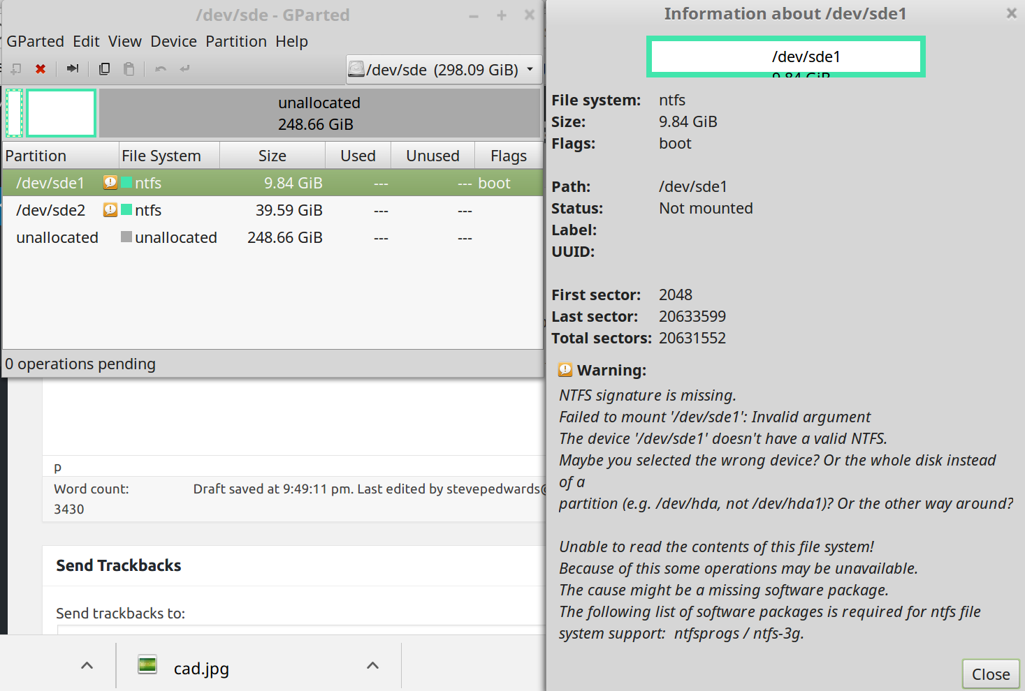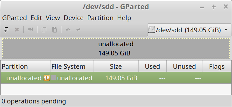 GP reads only an unallocated drive still because the linux partition table is not updated until a reboot.