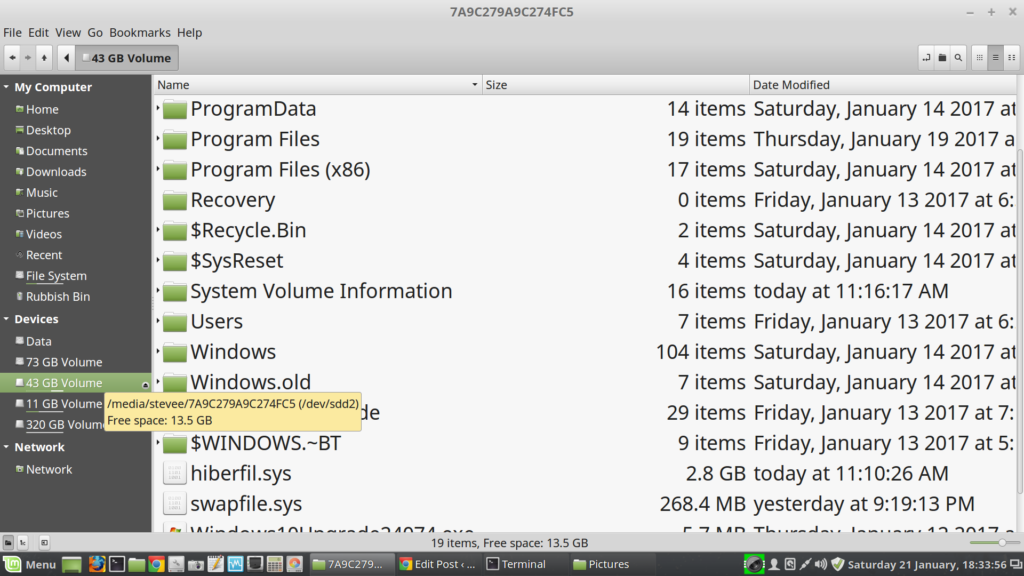 The Win10 Upgrade drive is /dev/sdd: