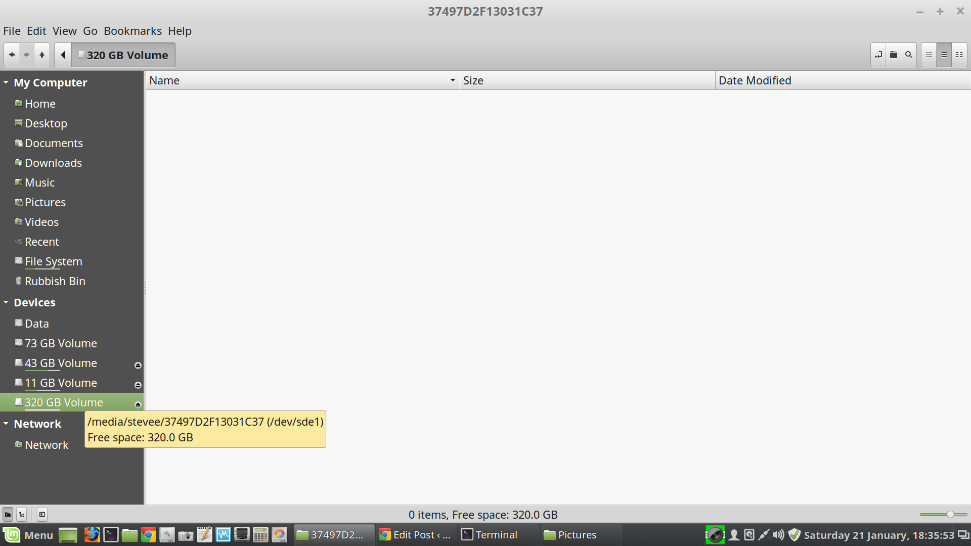 The blank drive is the 320GB /dev/sde