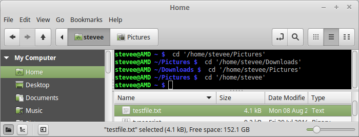 stevee@Mint5630 ~ $ ls -lsh testfile.txt