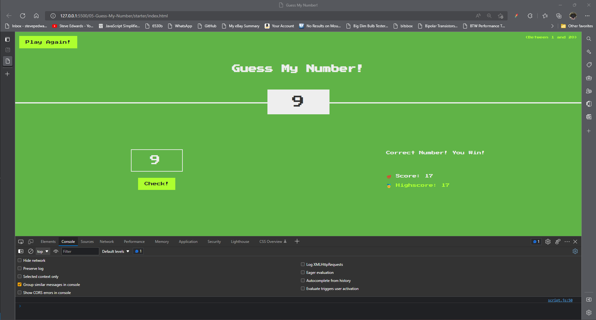 To work toward the DRY principle (Don't Repeat Yourself), the code in the previous learning Post comprised 2 almost equal blocks for two differnet conditions - one guess too high, the other too low.