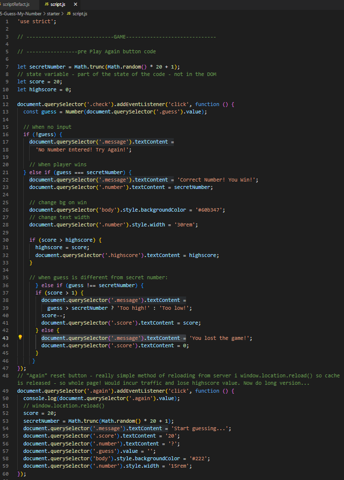 // document.querySelector('.message').textContent = 'You lost the game!';
