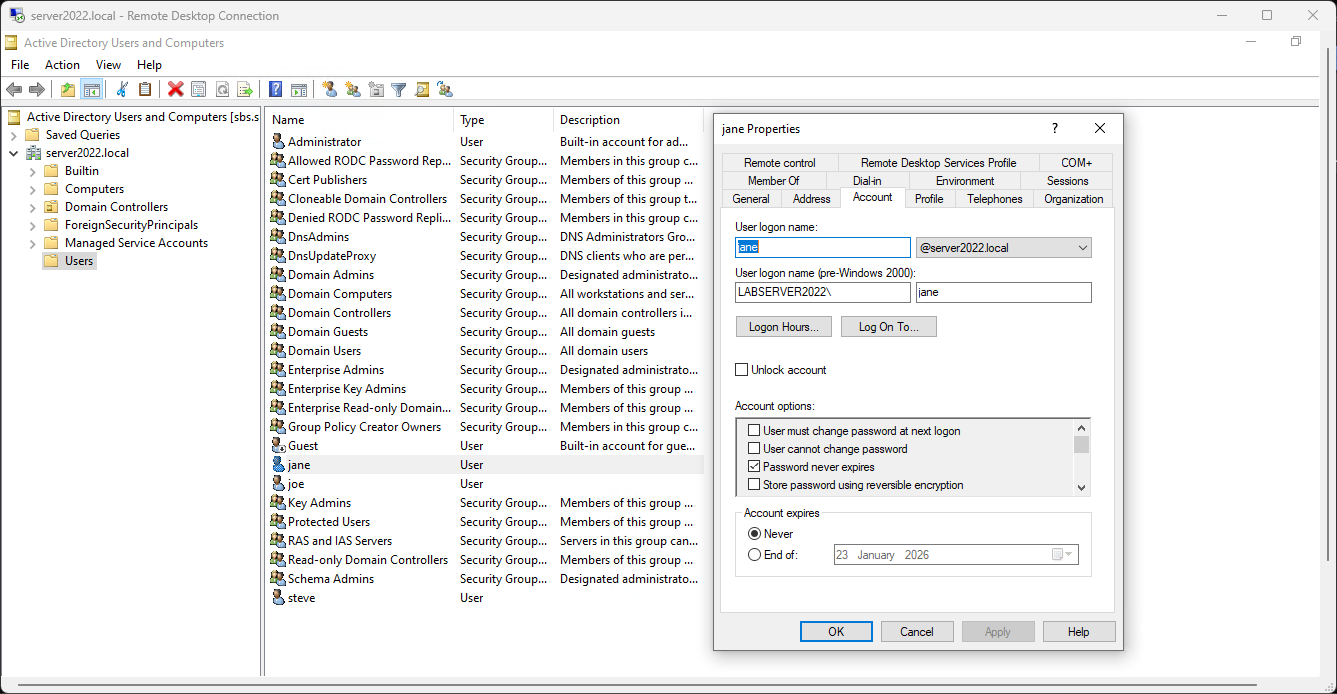1. Create a New Domain User: Setting up the username, UPN (email style), and initial password.