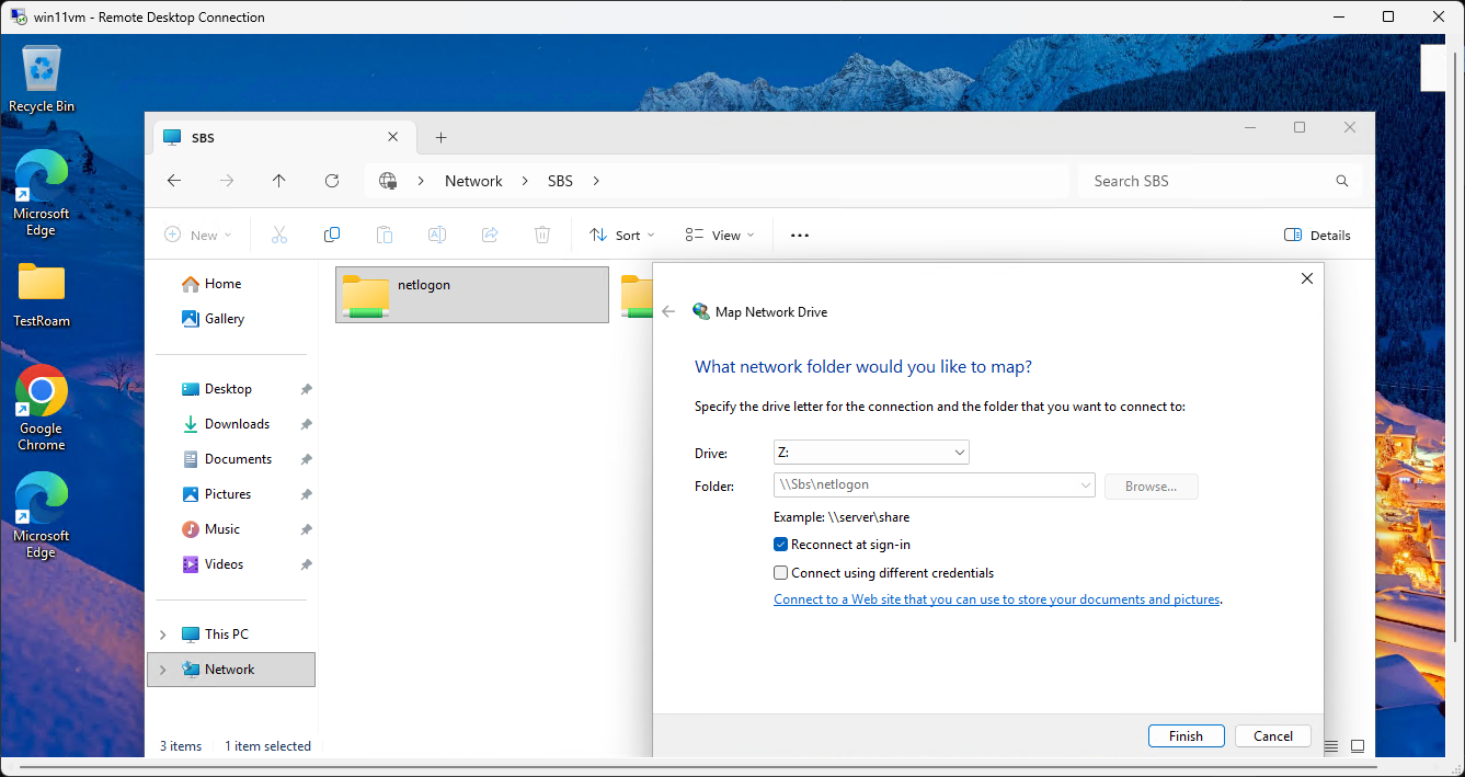 3. Map a Network Drive: Using the \\server\share path to connect a client to a server folder.