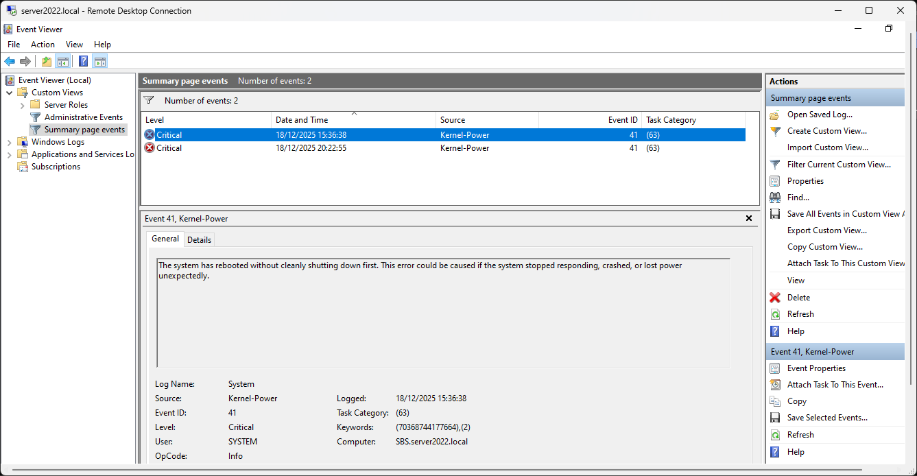 • System Crash (BSOD): The server froze or hit a Blue Screen of Death.