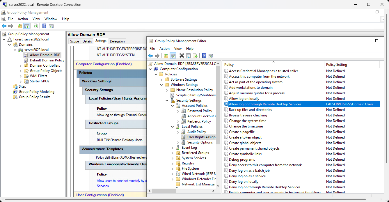 Advanced L2-3 Support - Group policy created to allow Domain Users to login to domain joined PCs without having to be in local PC RDP group first: