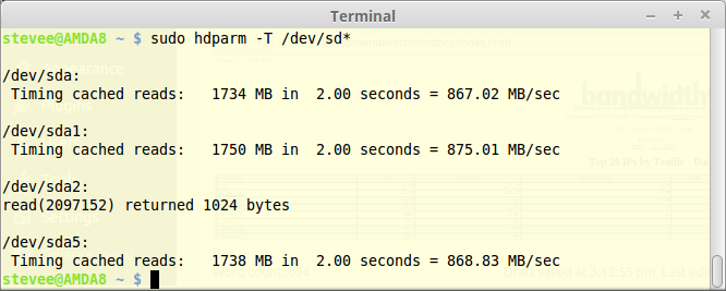 stevee@Dell490 ~ $ sudo hdparm -t /dev/sd*