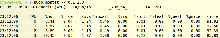 sudo mpstat -P 0,1,2,3