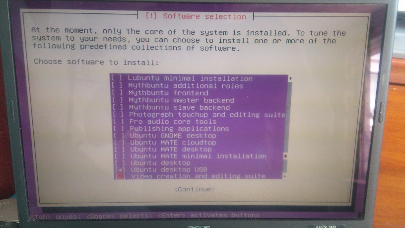 /dev/sda1 tasksel