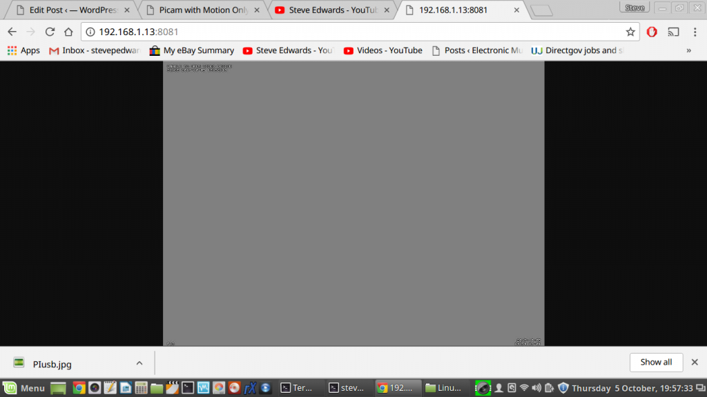Now the webserver is running but no camera image in browser as driver is not loaded.