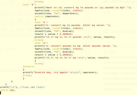 printf("%0.3f kg is %0.3f pounds \n\n", value, result);