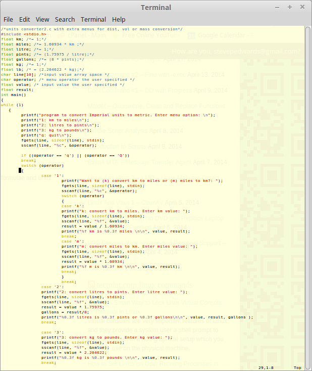I wanted to explore a further level of switching to implement a sub level menu within a main switch option, by adding to my Imperial to metric units converter. This allows extra functionality to a handy program - a two way units conversion choice.