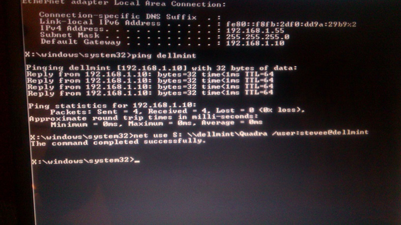 net use S: \\dellmint\Quadra /user:stevee@dellmint