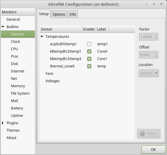 Now you just need to ssh to the remote server (dellmint) you wish to monitor locally, setting X forwarding for that server from your local terminal, which logs you in remotely again, then run gkrellm on the remote server.