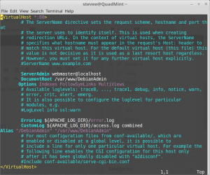 stevee@QuadMint ~ $ sudo vi /etc/apache2/sites-enabled/000-default.conf