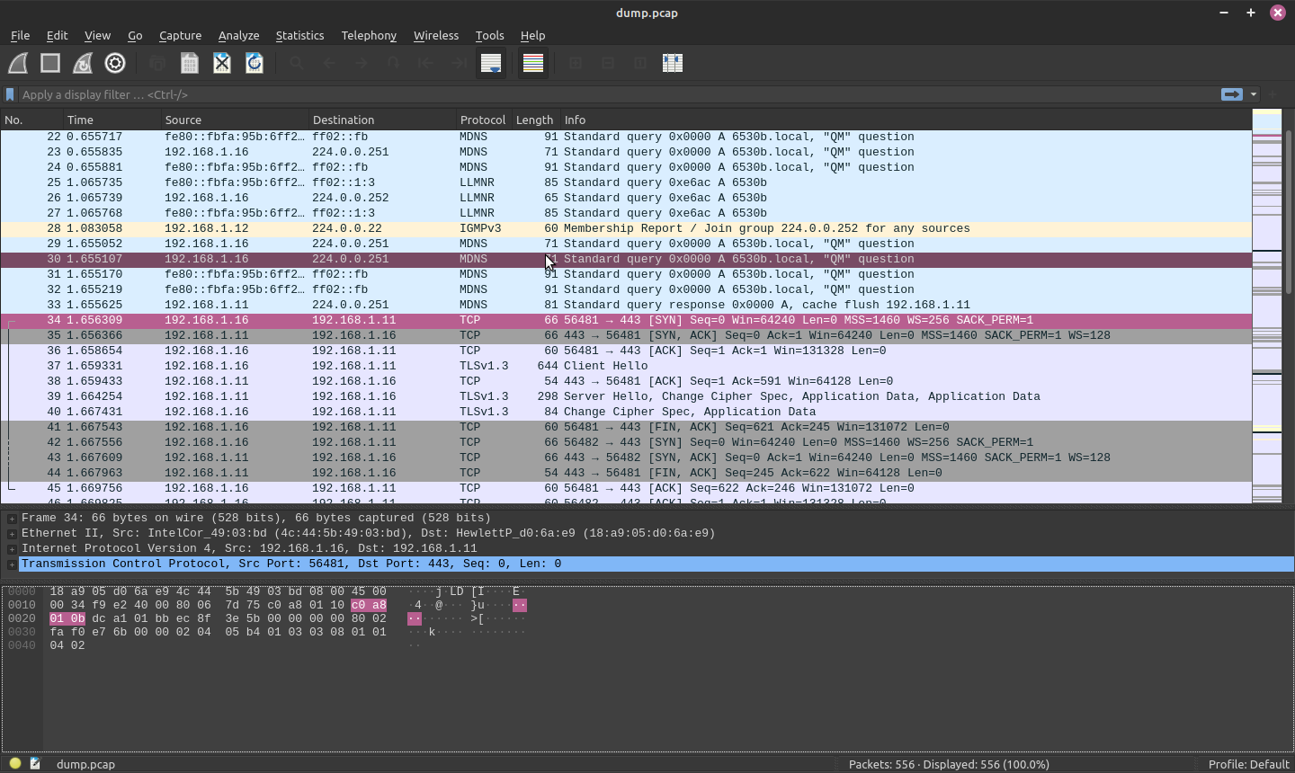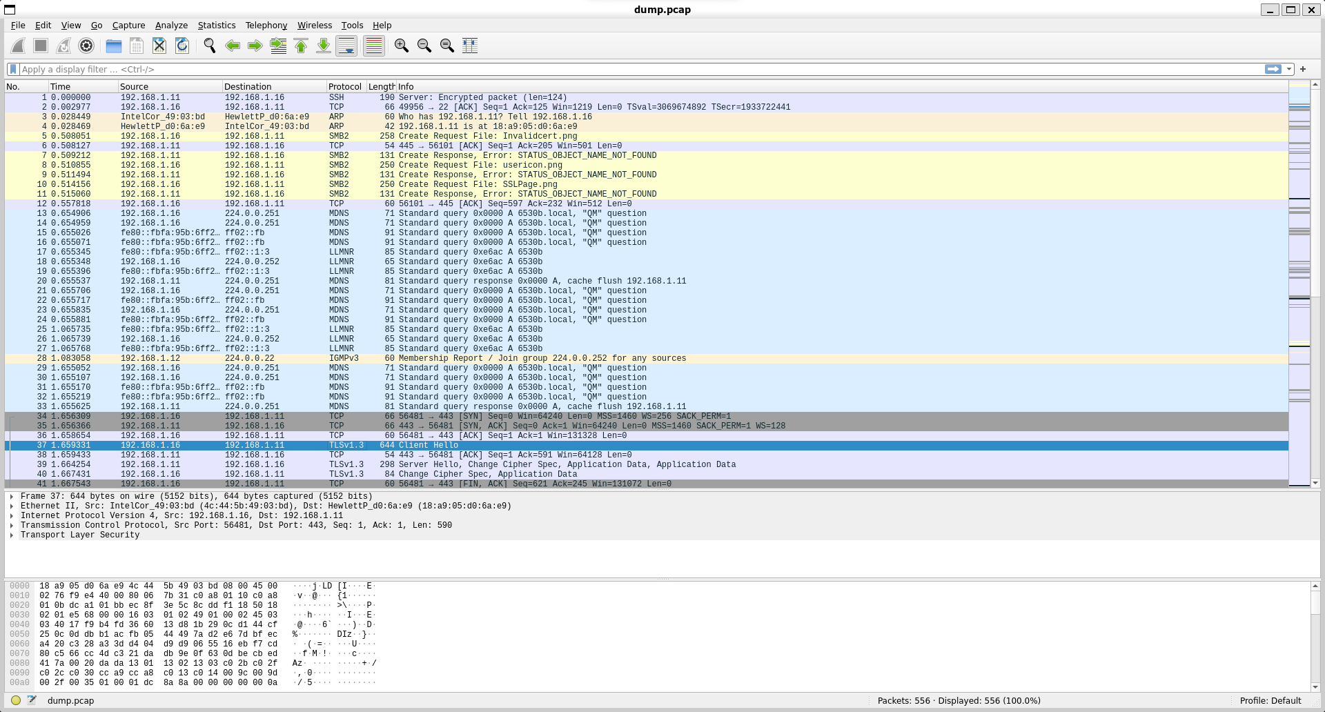 Now you can read it back on the local server where Wireshark is installed to give the screen view at the start of the Post - it needs an xserver, so you cannot see output over remote SSH without further tech wizardry to run a GUI app over SSH: