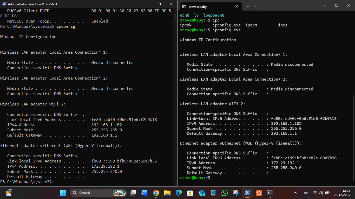 Once installed, I set up mirroring for the net adaptors of Win11 and WSL2 to be shared, so there is no NAT required for a different WSL2 subnet than Win11 would be on. There is still a technical boundary between them where WSL2 could use it's UFW firewall as an extra layer between WSL2 and Windows Defender that protects the external boundary (that connects to the Internet via a WiFi router etc). You know mirroring is working if both WSL2 and Win11 have the same adaptors info: