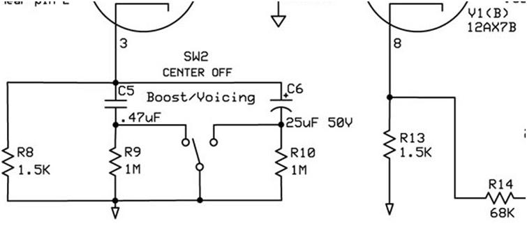 This EQ section is a nice and quite simple mod for any amp that uses this triode "Resistance Capacity Coupling" or "Common Cathode" configuration - 5 components and a switch drill hole!