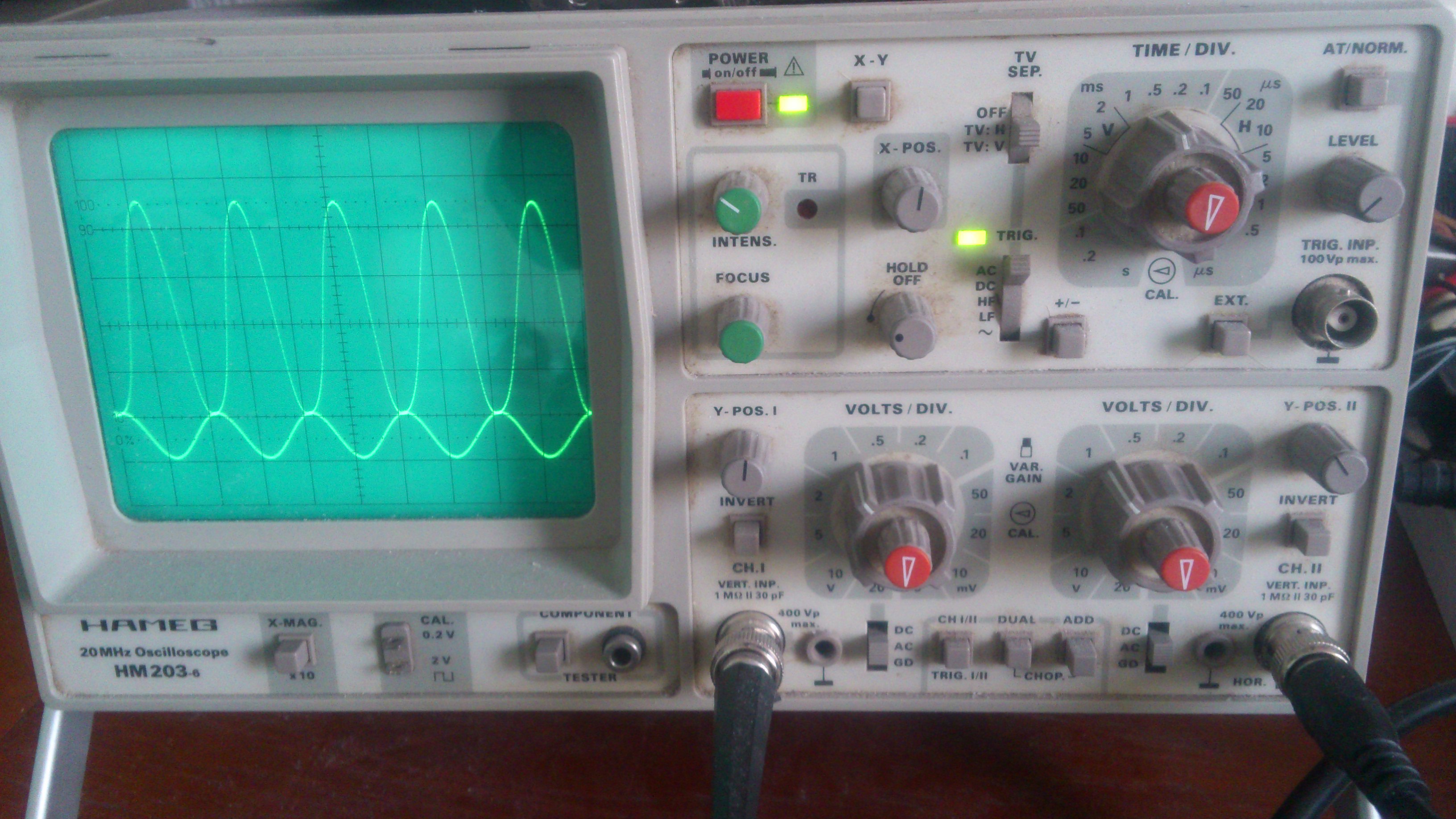 I want to measure the Gain of each triode roughly myself, to get an idea of how much amplification occurs at each stage, and so the pre amp section overall. This is basically a ratio of the output signal/input signal in amplitude (voltage) terms.