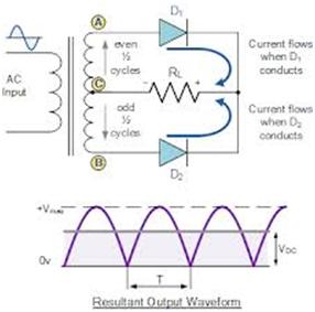There are some good visual examples of different ways these rectifier circuits can be drawn and applied, showing the phase and half cycles of the AC, here: