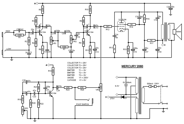 A clear example of where the transformer, rectifier diodes and smoothing capacitors sit in a valve amp is in the Aston amp schematic: