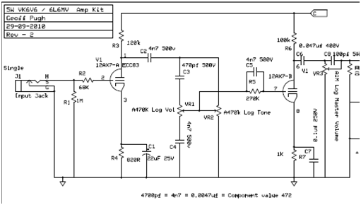The original Fender Champ circuit is similar except for a centre-tapped mains secondary and 2 diode rectification, as all these basic 5W - 12W kit amps are based on older audio circuits, like the Williamson amplifier