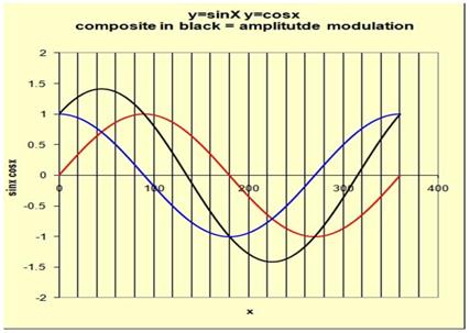 This can be created by capacitors and resistors in a resonant circuit, producing Amplitude Modulation of the output signal - there is a great java applet of AM and FM here:
