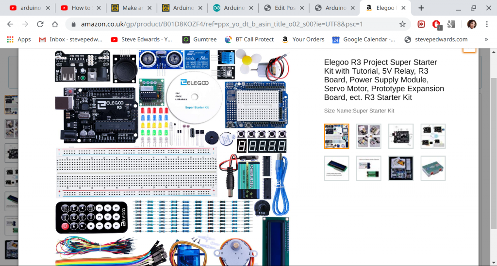 I bought the Elegoo R3 Project Super Starter kit from Amazon, -£30: