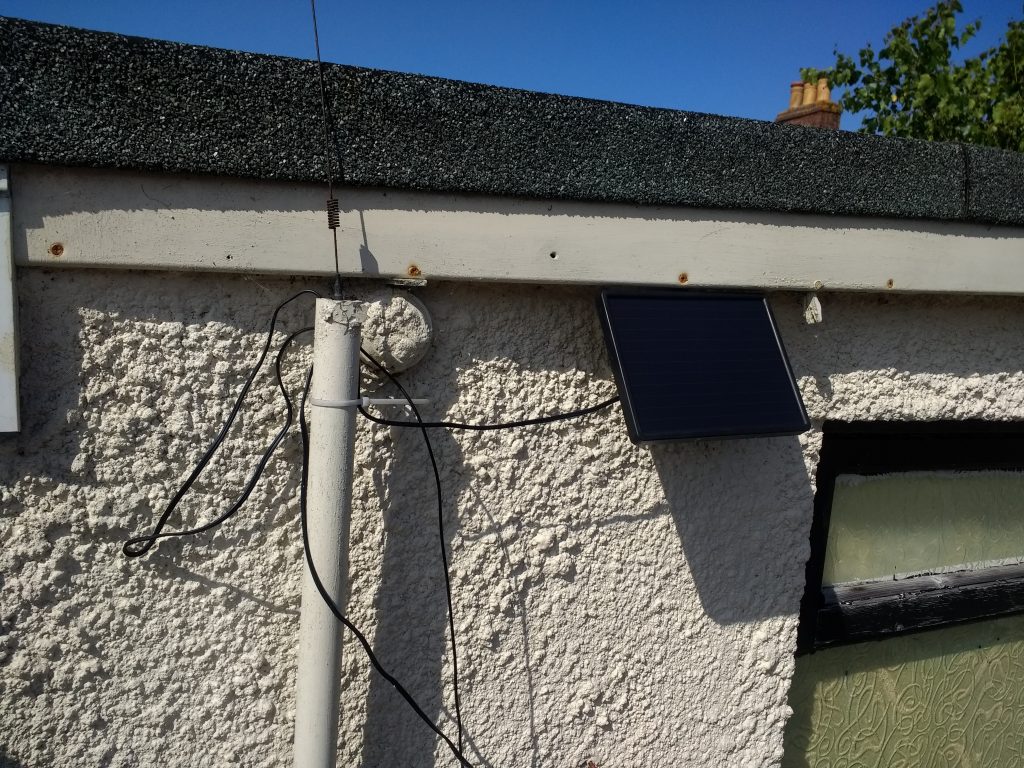 My 9.5V solar panel powers the Uno: