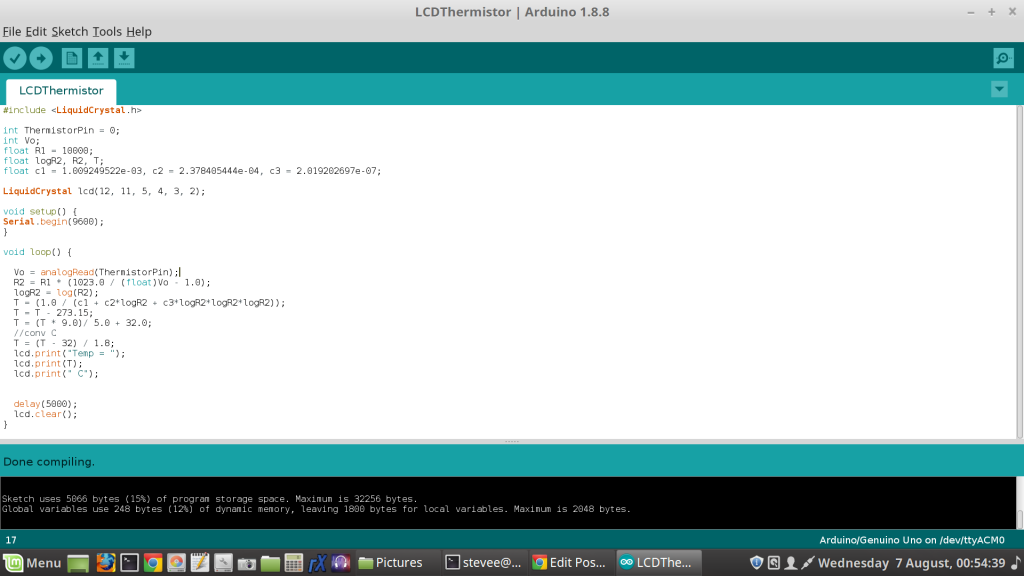 In one evening I got the first basics done - A/D converter- resistor, temp/humidity sensor then the thermistor/LCD projects. Very educational!