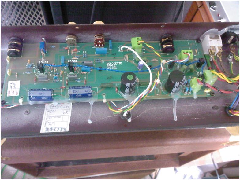 Again, it shows what can happen if amps are left too long un-played. This was just a case of a bad contact somewhere - apart from the obvious blown valve - that just required a wipe and look over, and connectors and jack sockets spraying with Isopropyl Alcohol.