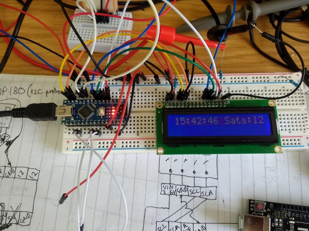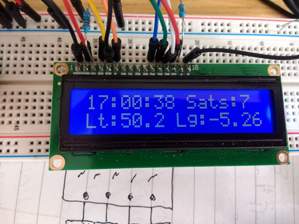 Amended to show clock time and no. Sats (SVs - Sats in View) in LCD below