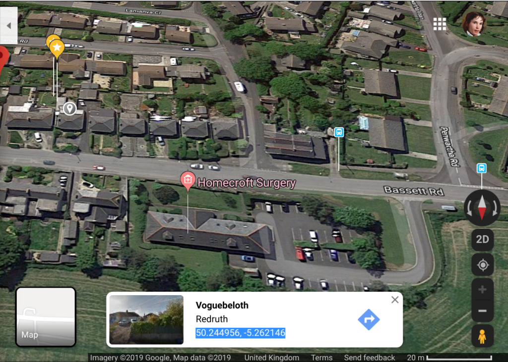 My lat/long is correct to my phone/google maps at 50.244956, -5.262146: