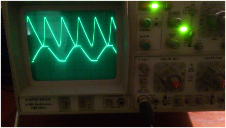 This linear drop from a sawtooth waveform is apparent above and can be described by: