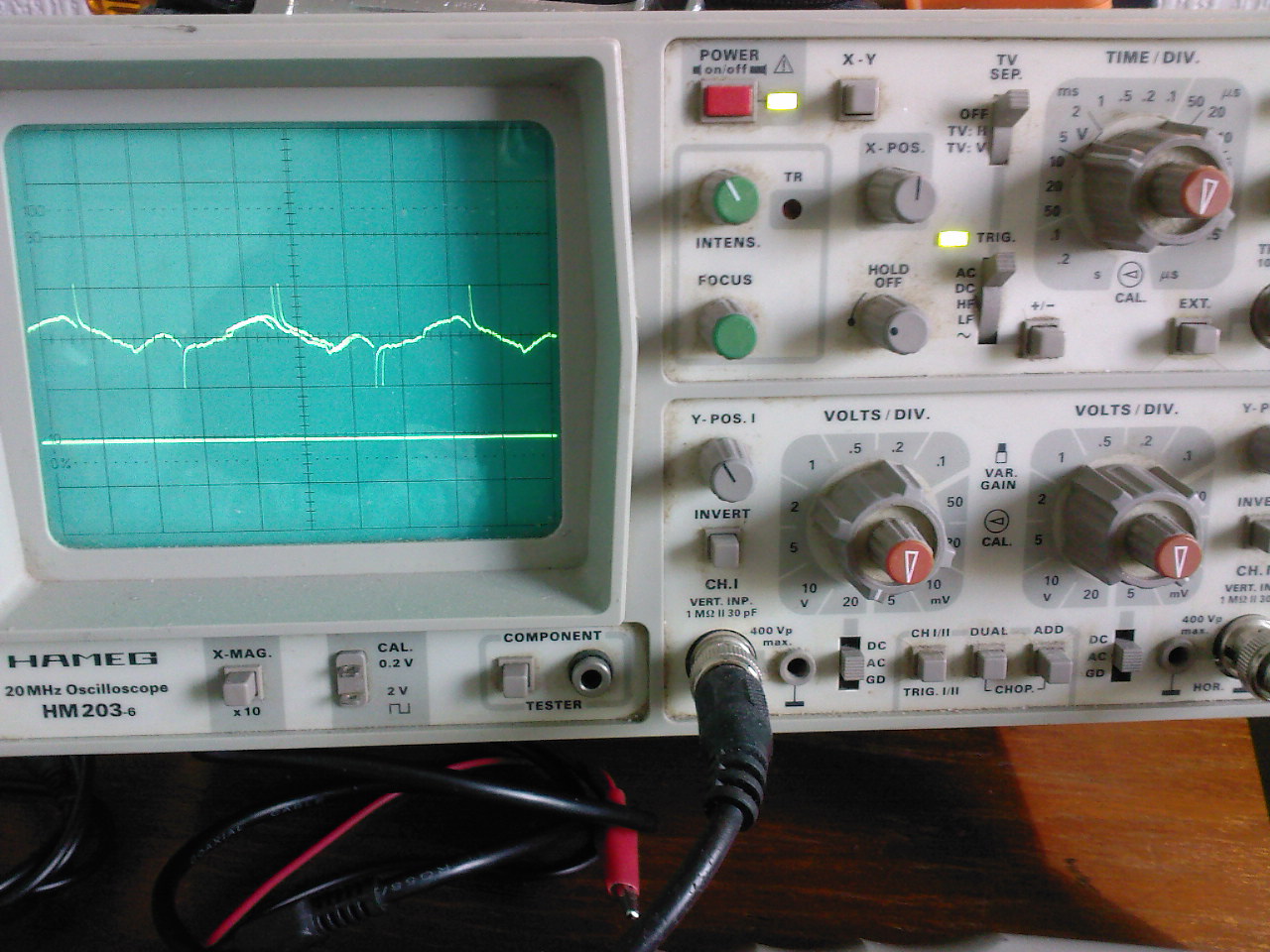 There is still some hum/hash with this amp, but it is bearable, though on the scope the there is only a little trace of a spike here on the power anodes: