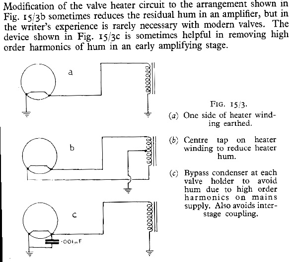 I tried setup c: with my 4n7 filter just by moving it from grid pin2 on the LTP to heater pin 4, removing the heater centre tap from ground, and grounding the end instead, but it just made overall hum MUCH worse instead.