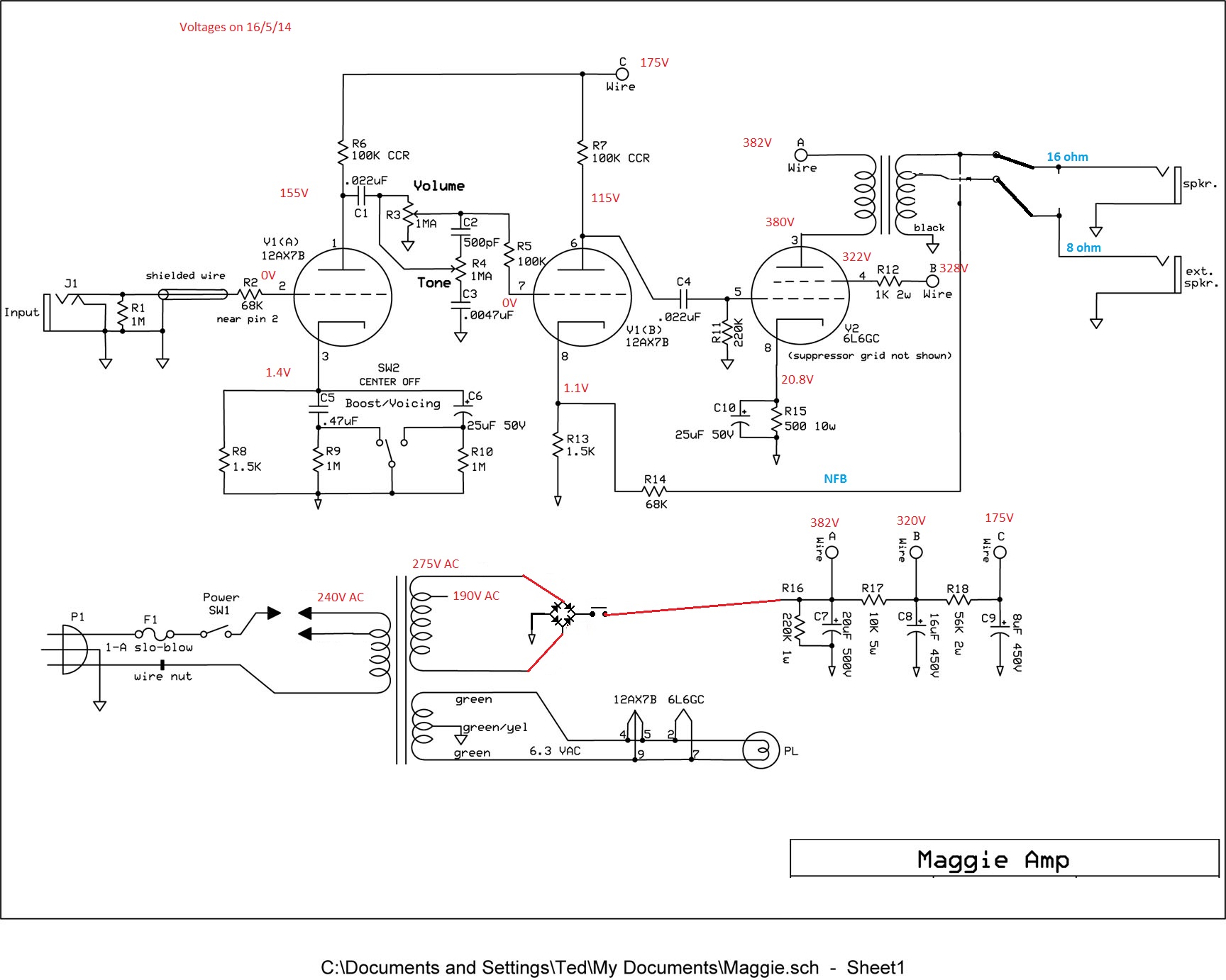 OK - I rewired it after moving the transformers inside the body of the chassis like the Maggie etc - a lot tidier wiring now also, but there is still some mains hum/hash with this amp. The Ripple percentage is low though - 17V of a rail voltage at A+ of about 365V is about 5% - a really good figure according to Blencowe (chap3, p59) for any valve amp.