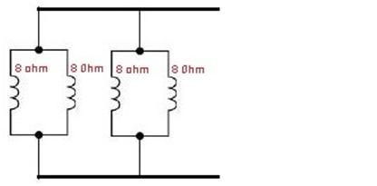 These are the simplest examples, and the same principle applies for other impedance value speakers of course, 2 x 16 ohms in parallel gives 8 ohms, as does 2 x 4 ohms in series.
