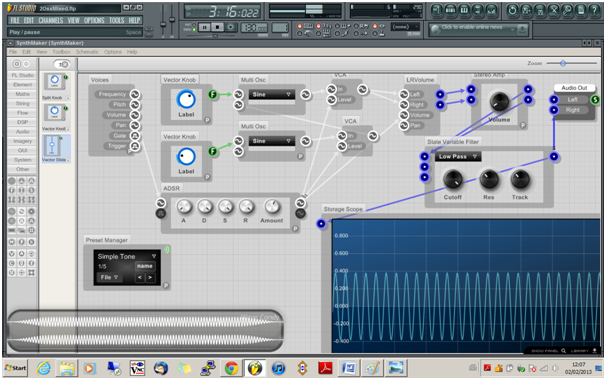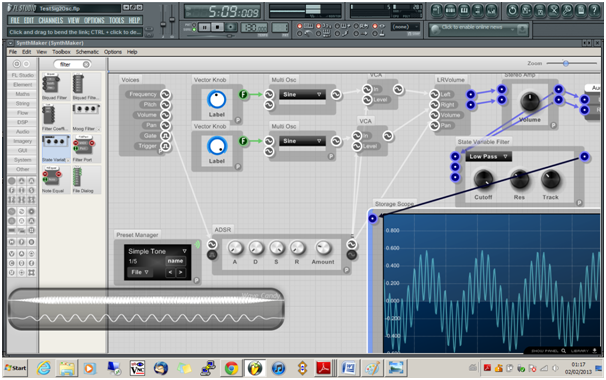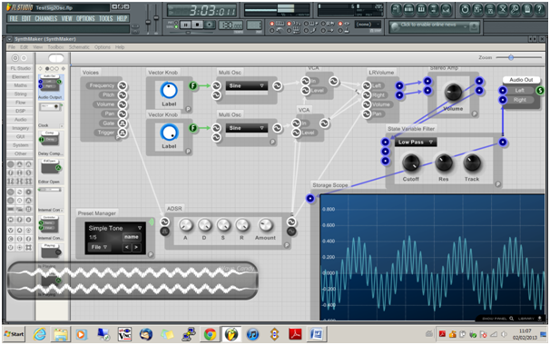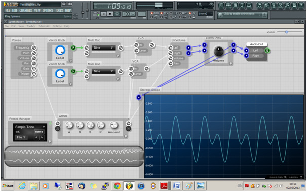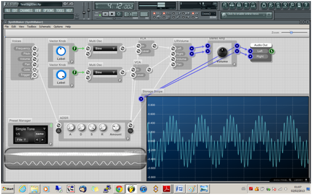 This concept can be shown using the Synthmaker circuit for the Test Tone I showed in the previous Post, and adding a second oscillator: